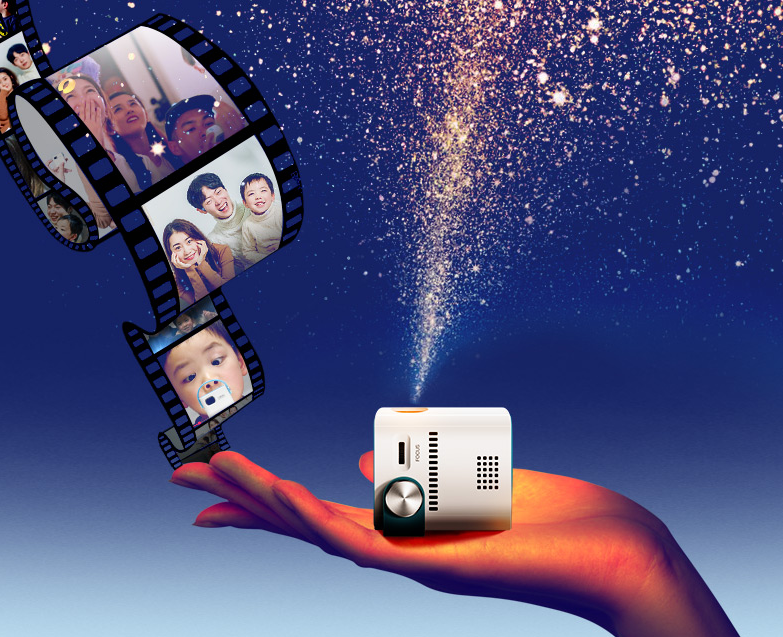 微麦研发的这款微型投影仪,小巧玲珑,颜色采用了百搭的蓝白色不失优雅。这个小物体充满了文艺的气息。